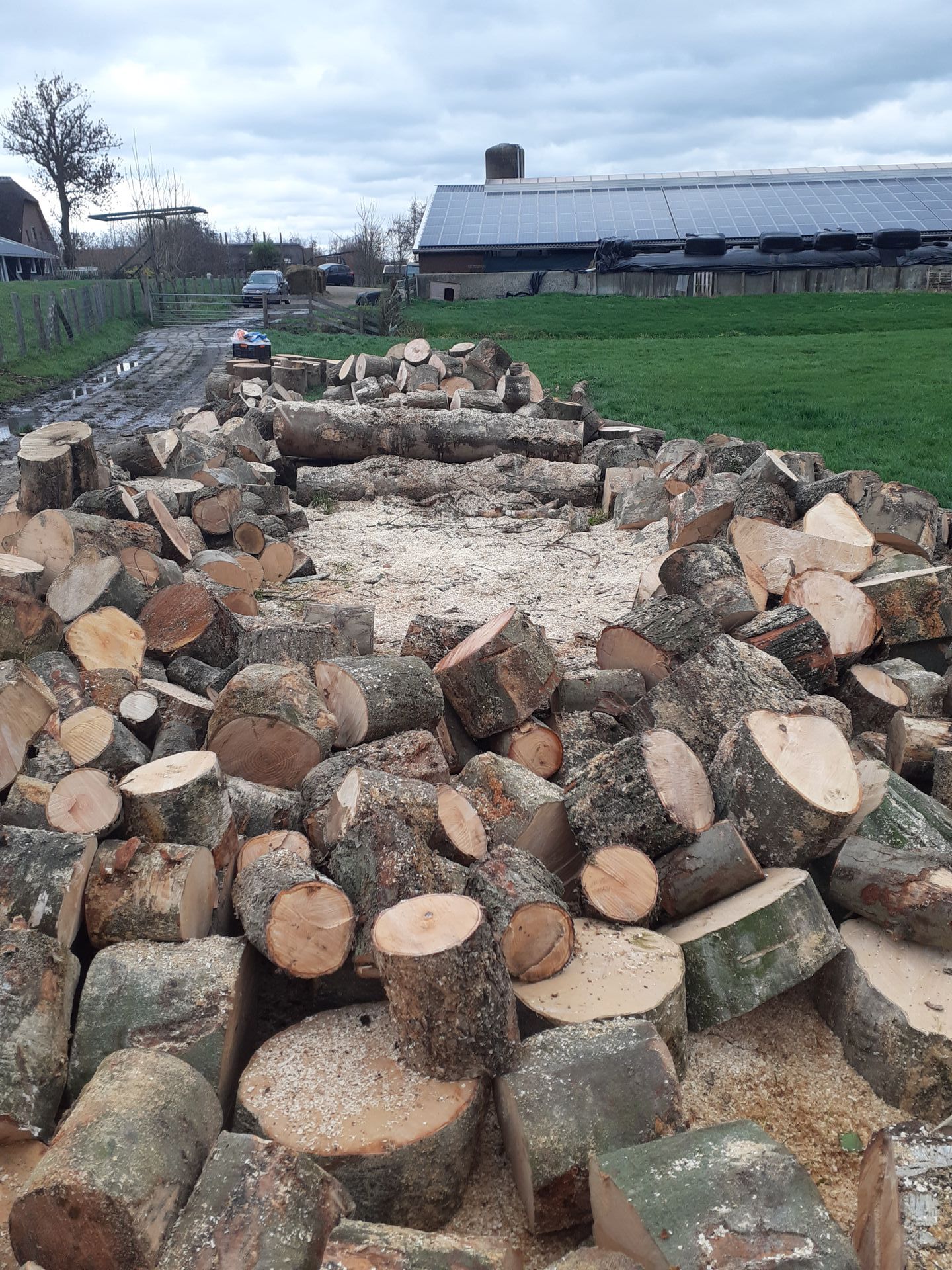 De Knotgroep heeft een houtschuur op het erf van Kaasboerderij Van Veen aan de Weipoort in Zoeterwoude. Hier wordt houd gekloofd en gedroogd voor de verkoop als haardhout.